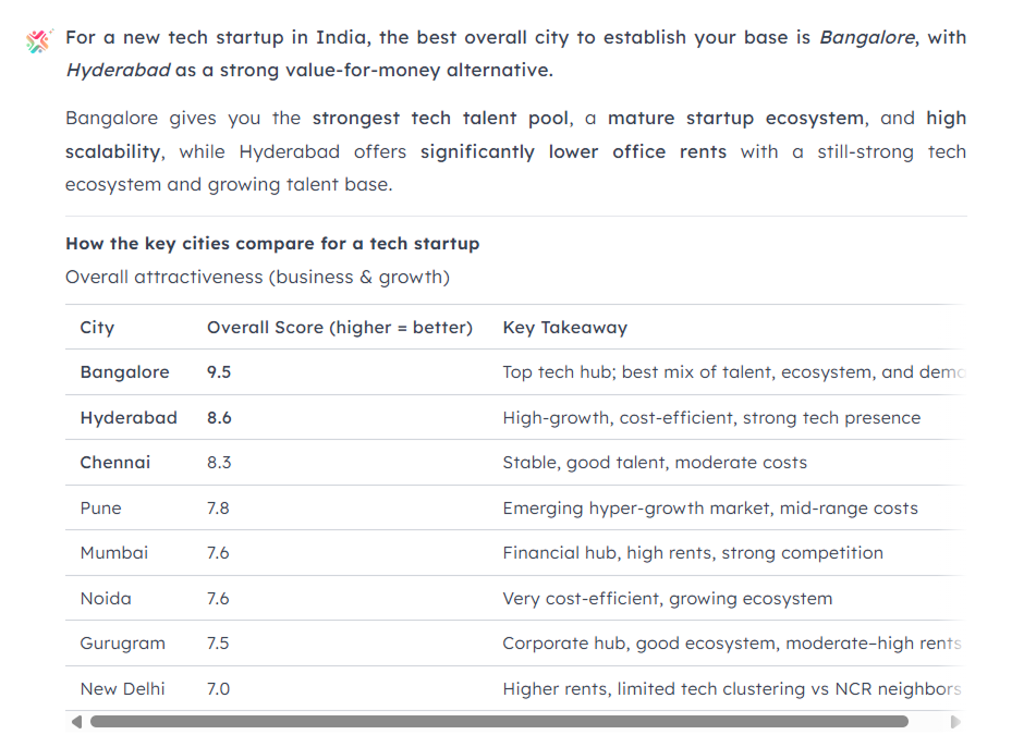 Ask almost anyone in the startup ecosystem which Indian city is best for a new tech company, and you'll get the same answer: Bengaluru. It's received wisdom at this point, so embedded in the conversation that most people have stopped questioning it. And they're probably right. But “probably right” and “defensibly correct” are very different things, especially when you're making a location decision that will shape your talent pipeline, your office costs, and your ability to scale for the next several years.