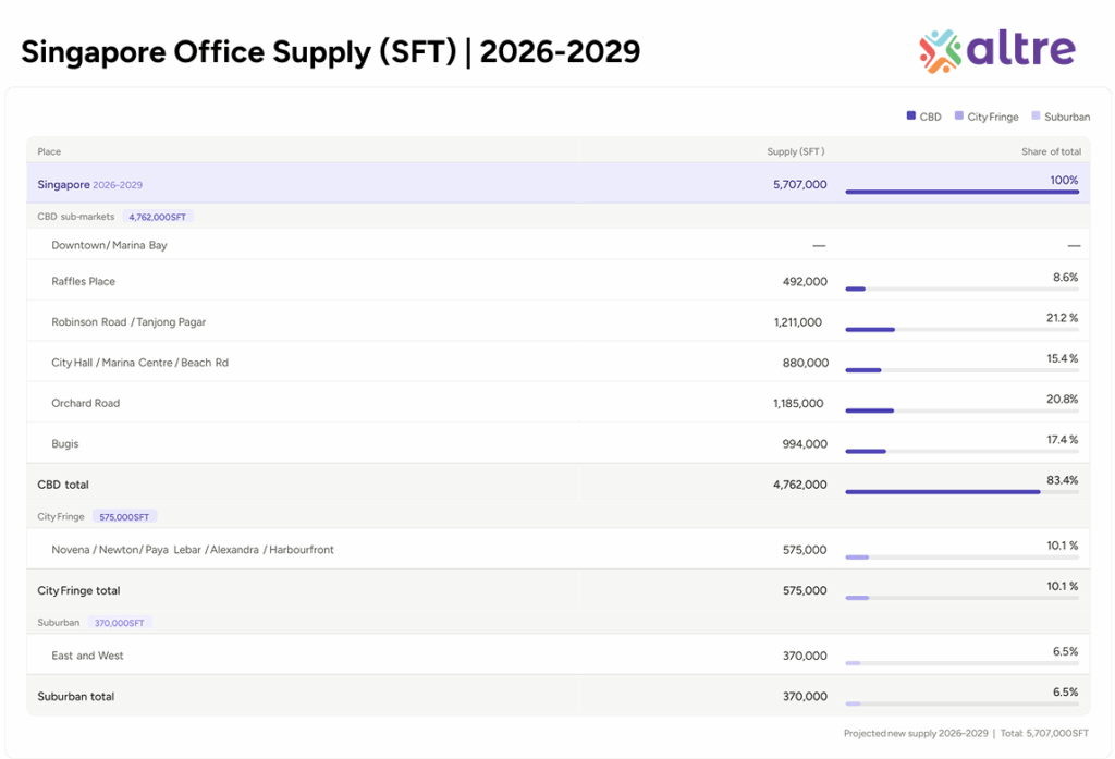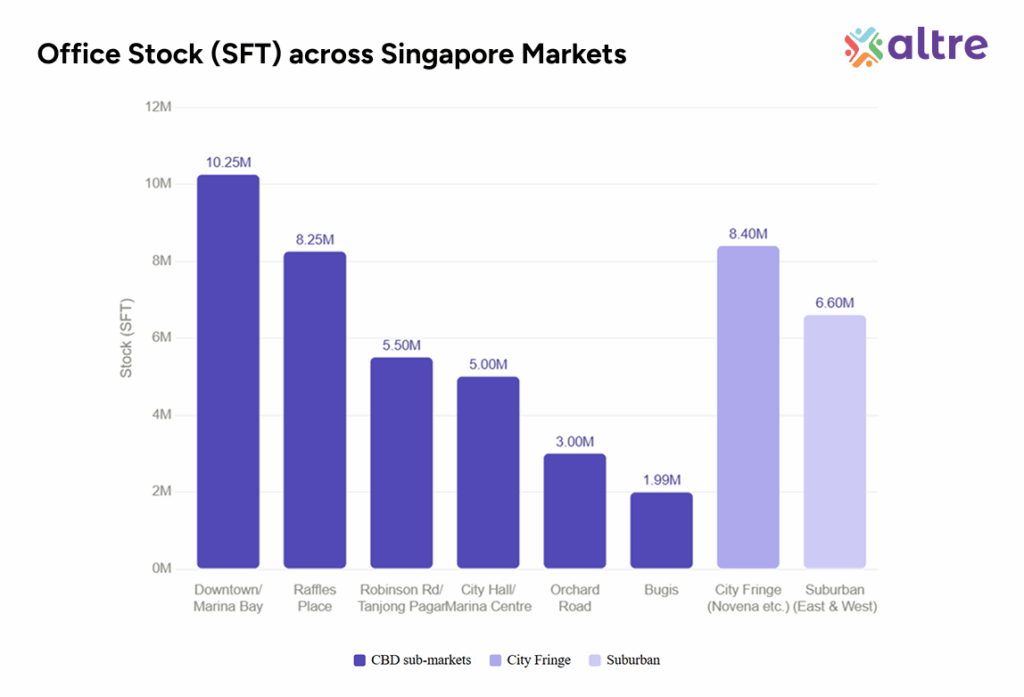 - City Fringe (~8.4 million sq ft stock) Includes decentralized business nodes like Paya Lebar and Harbourfront